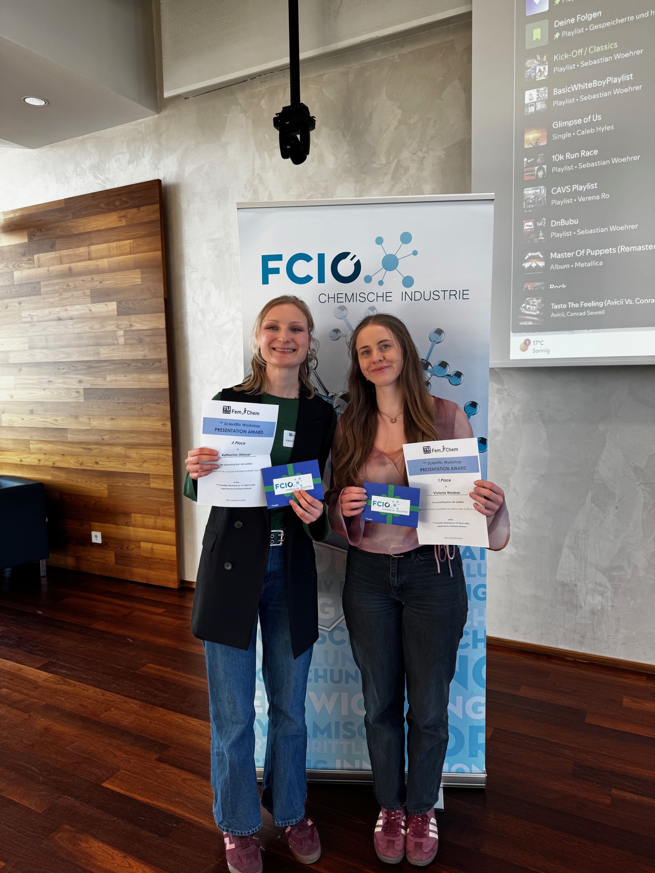 Beide Preisträgerinnen erhielten als Anerkennung ihrer hervorragenden Beiträge einen Gutschein für die Teilnahme an den Chemietagen der GÖCH sowie einen € 100 Thalia-Gutschein.